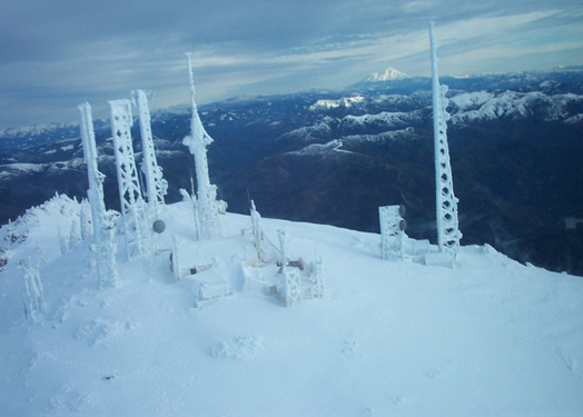 Winter weather is extremely severe. A 1995 storm developed wind speeds exceeding 130 mph. The site is manned continuously by a technician employed by KRCR, Redding. Winter access is by snowcat or helicopter only.